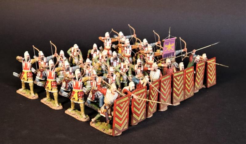 The use of shielded spearmen protecting ranks of archers was nothing new, and such units had been the mainstay of Assyrian and Babylonian armies for centuries. The Persian formation was a modification of this arrangement; nine rows of archers would be protected by one row of shield-bearers.