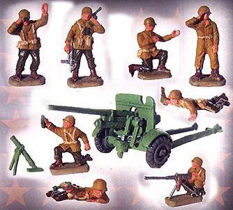 (32 figures in 8 poses & 4 Guns). Unpainted Plastic